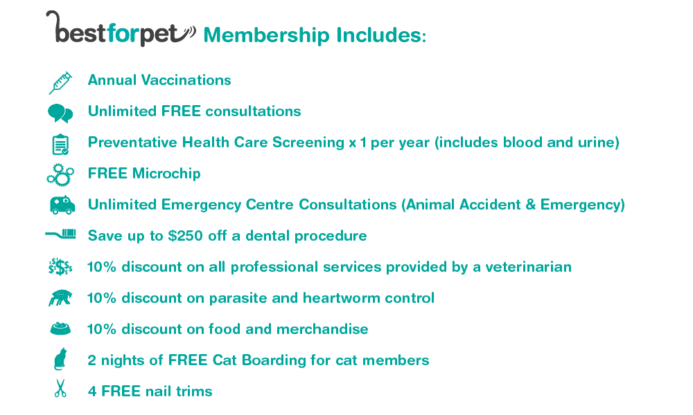 Best for Pet gives clients the reassurance of providing the best possible care in a convenient and cost effective way. The annual membership fee is spread out over 12 months, with an initial up-front payment followed by 11 equal monthly debits.