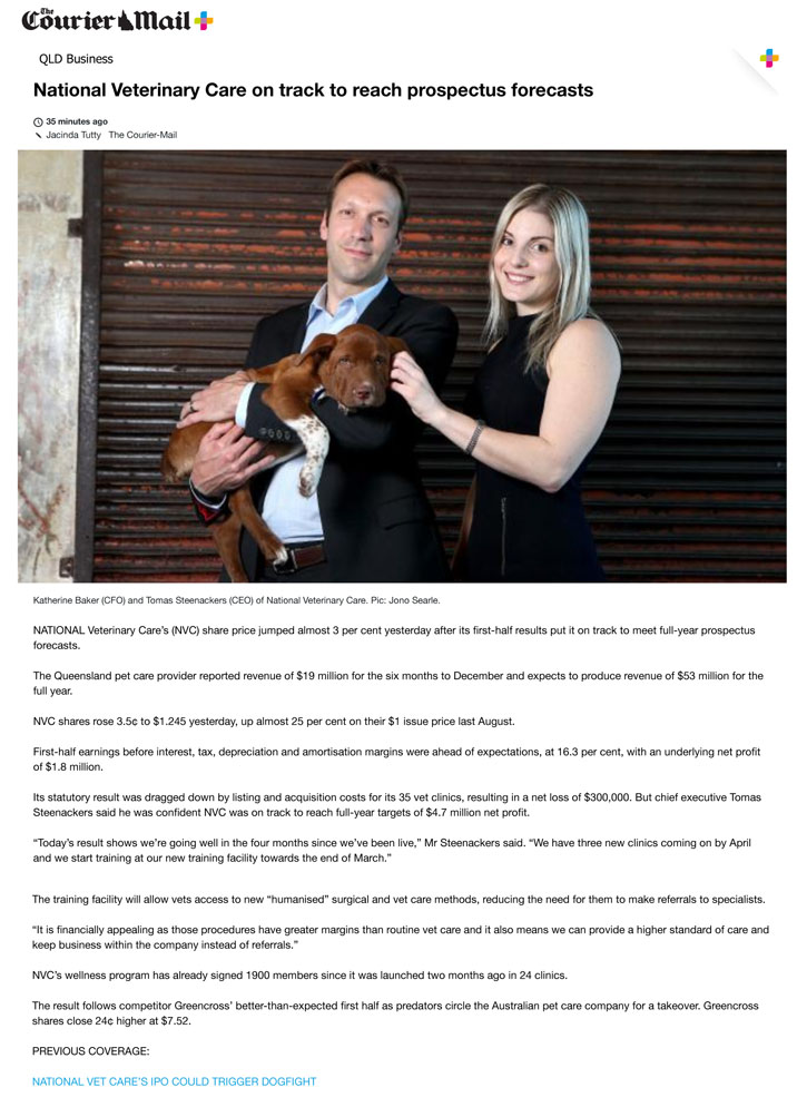 NVC aims to be a leading provider of veterinary services in Australia and New Zealand. The company strives to achieve excellence in clinical care for pets, and to build a platform for loyal, long term relationships with their owners.